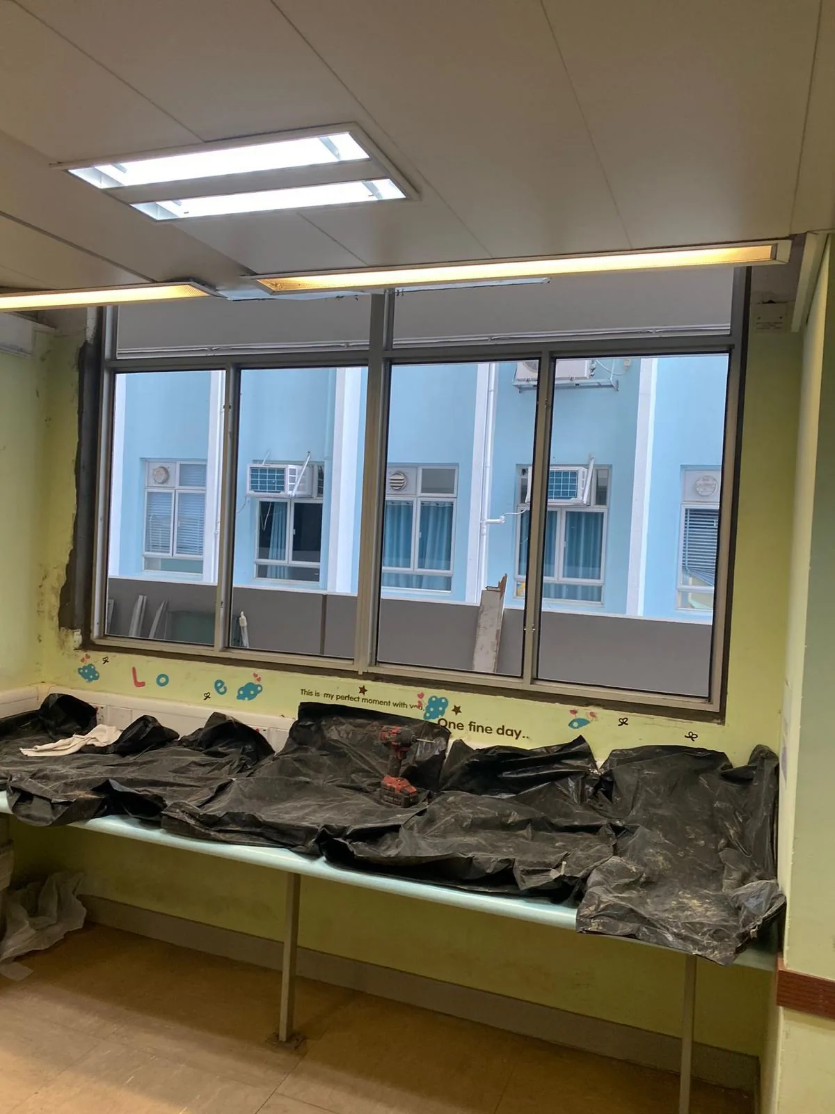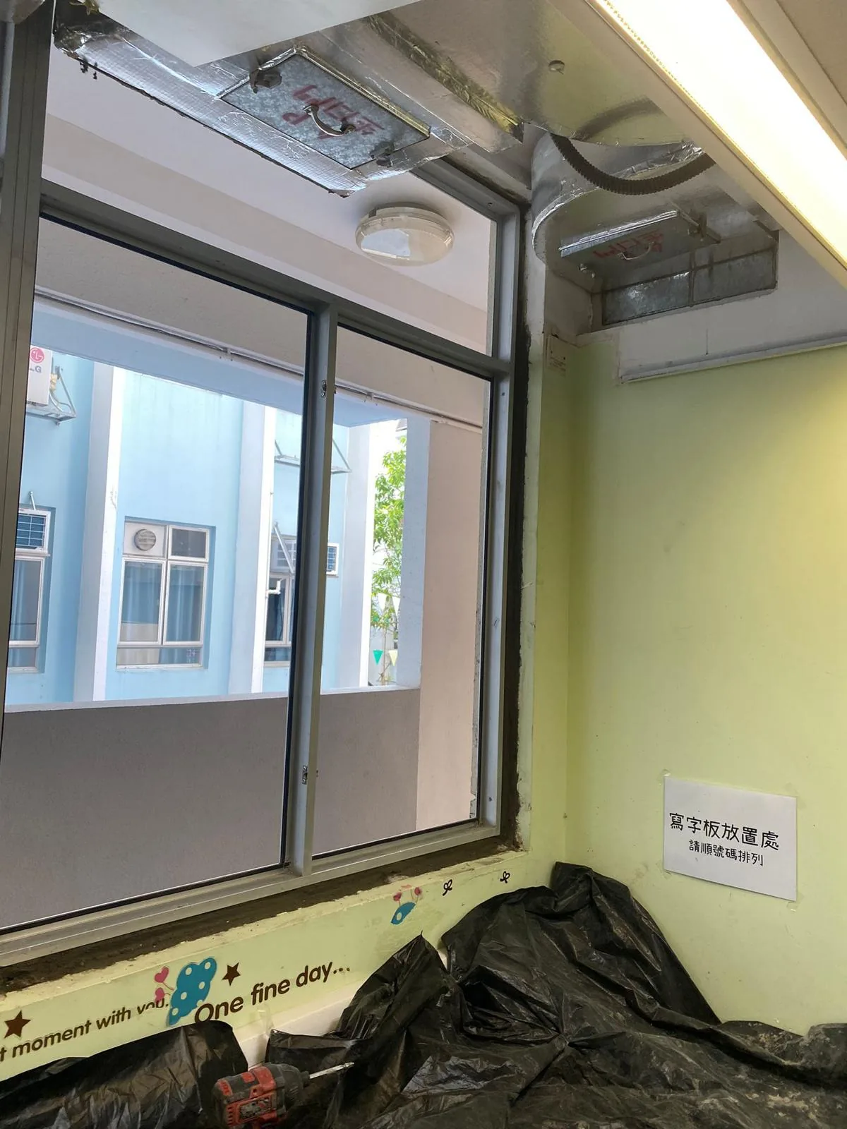 學校現有鋁窗使用年限過長,窗鉸出現氧化,密封膠條收縮變硬,雨天出現漏水問題。安進更換學校所有課室窗戶,確保符合學校安全使用標準,工程安排於假期施工,減少對教學的影響。