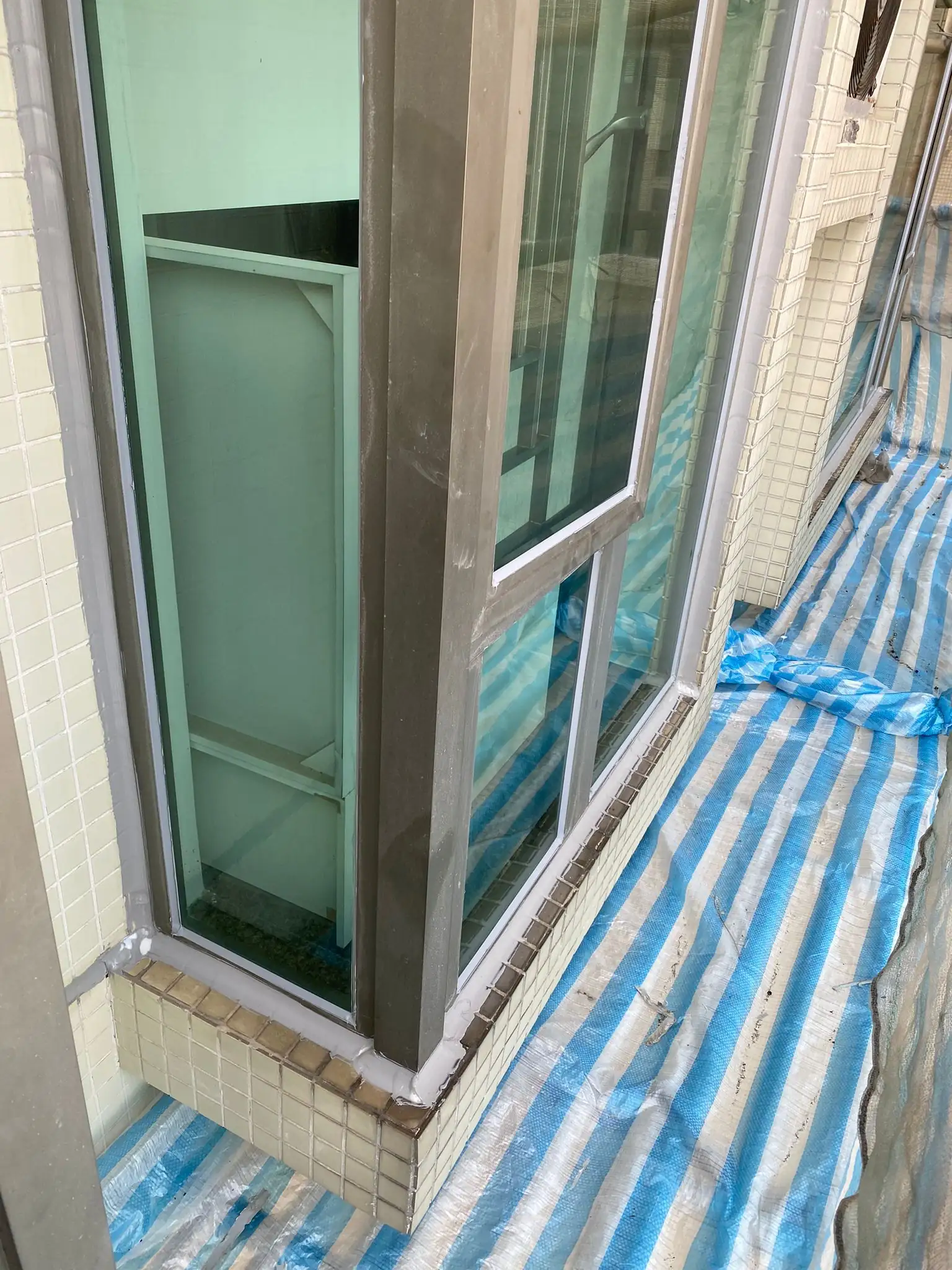 住宅單位窗框密封膠條變硬收縮,外牆結構膠龜裂,每逢大雨會出現滲水,影響牆身及窗台。安進清除所有外牆結構膠及更換密封膠邊,並重新填縫外牆所有結構膠及玻璃膠,徹底解決滲水問題。